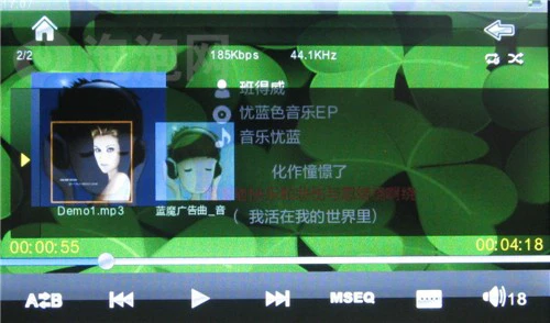 在音频播放上,T11 RK提供多个音频文件的支持,比如我们熟悉的MP3、WMA、APE、FLAC、OGG、ACC等等。UI设计是T11 RK非常出彩的一个部分,厂商宣传其为呼吸式界面,笔者自己认为可能是这种20%透明的效果比较清新因而得名吧。
