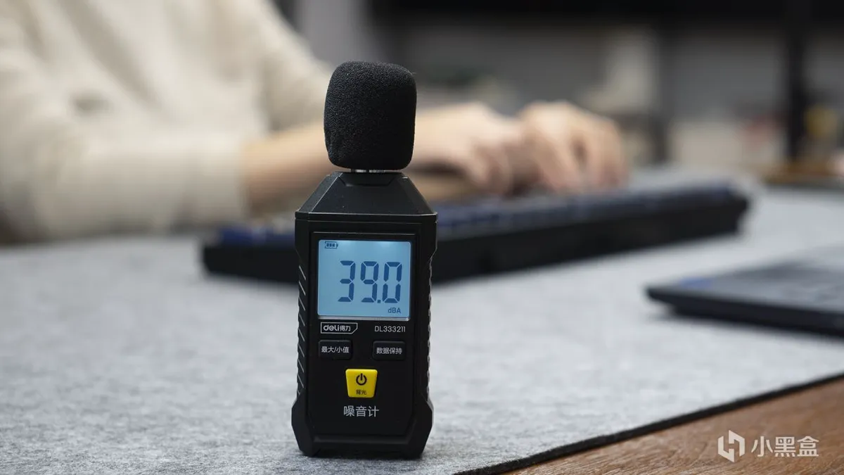 我们也做了一个非常简单的测试。在键盘正常力度、速度录入的时候,在一米左右放置的噪声计所测得的噪音约为39分贝(相当于窃窃私语),对于机械键盘这个品类来说,它就好比手枪配备了消音器。不论是我们多么疯狂的录入,它都不会招来同事的嫌弃。