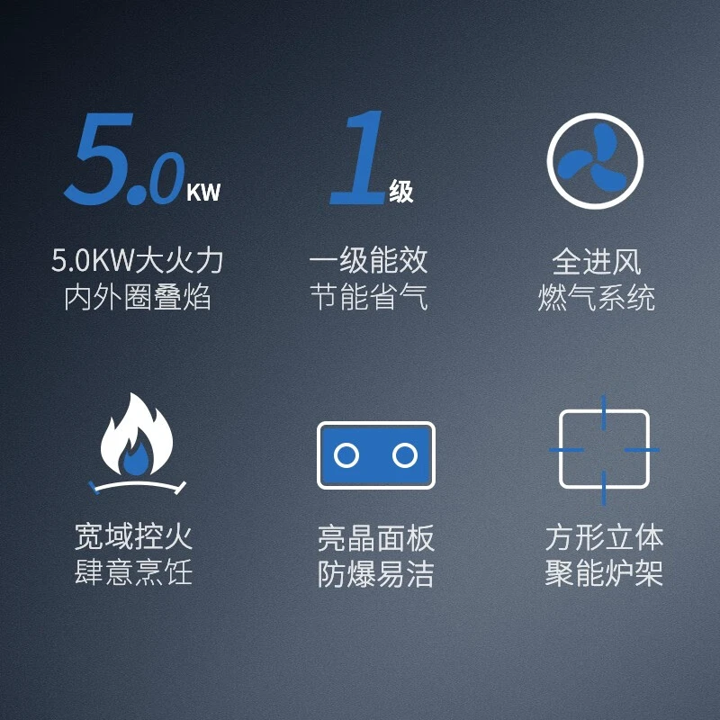 这款灶具的火力,也是非常强大,炉头的火力达到5.0kW,就像小岳岳的相声,火爆有力,不管是炒菜还是炖汤,都能轻松搞定。