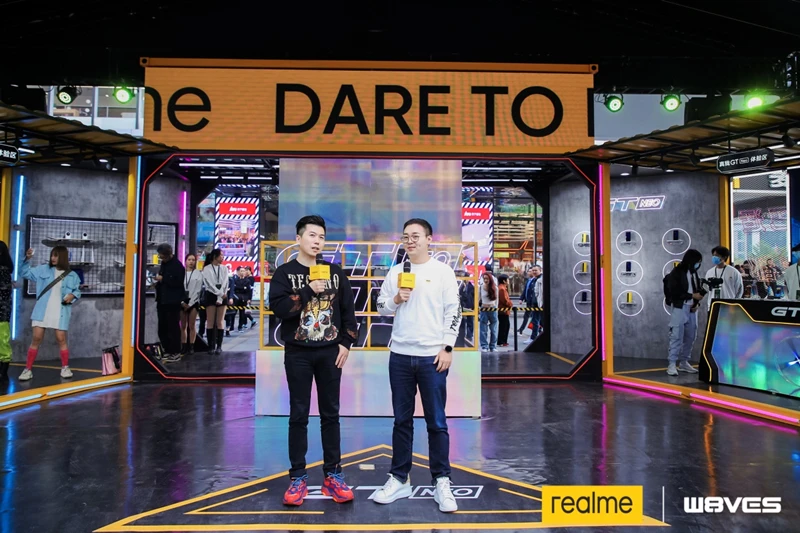 在开售当天,realme 快闪店空降重庆苏宁易购门店,为年轻人带来一场潮流盛宴,realme副总裁徐起和苏宁易购通讯公司副总裁张舞阳一同在现场与年轻消费用户一起互动,共同诠释双方年轻化的品牌主张,打造不一样的潮流体验。