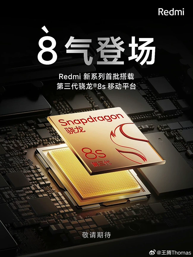 高通在今天下午举办了新品发布会,带来了全新的高通第三代骁龙8s芯片,而小米也正式宣布,Redmi新机将成为首批搭载该芯片的机型,这也就意味着骁龙8系首次落地中端,Redmi将重塑中端性能格局。