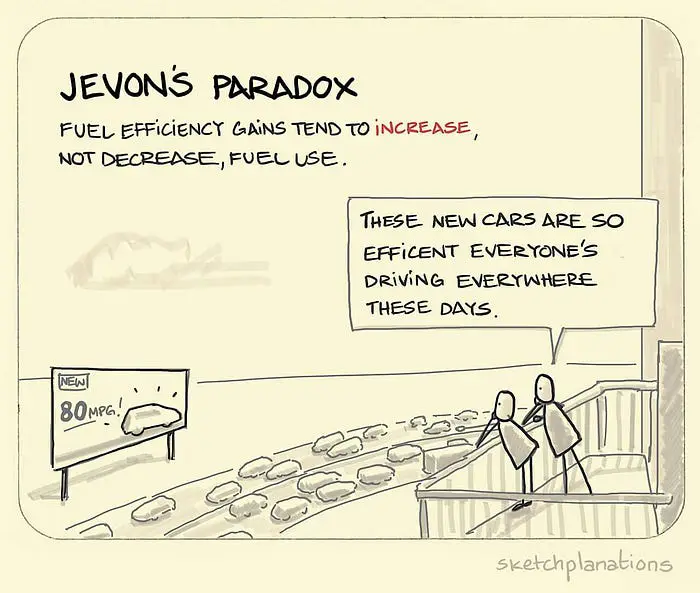 杰沃恩斯悖论出现了。该经济理论以经济学家威廉·斯坦利·杰沃恩斯命名,认为当技术进步提高资源的效率时,该资源的消费速率可能会增加而不是减少。