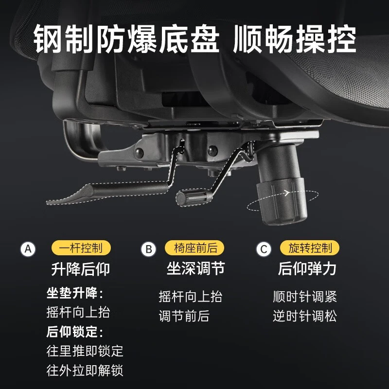 最神奇的是,这椅子还具备智能集成操控,单杆操控集新一代后仰快捷弹力调整、控制后仰、座高、座深于一体,操作简单得跟玩儿似的。
