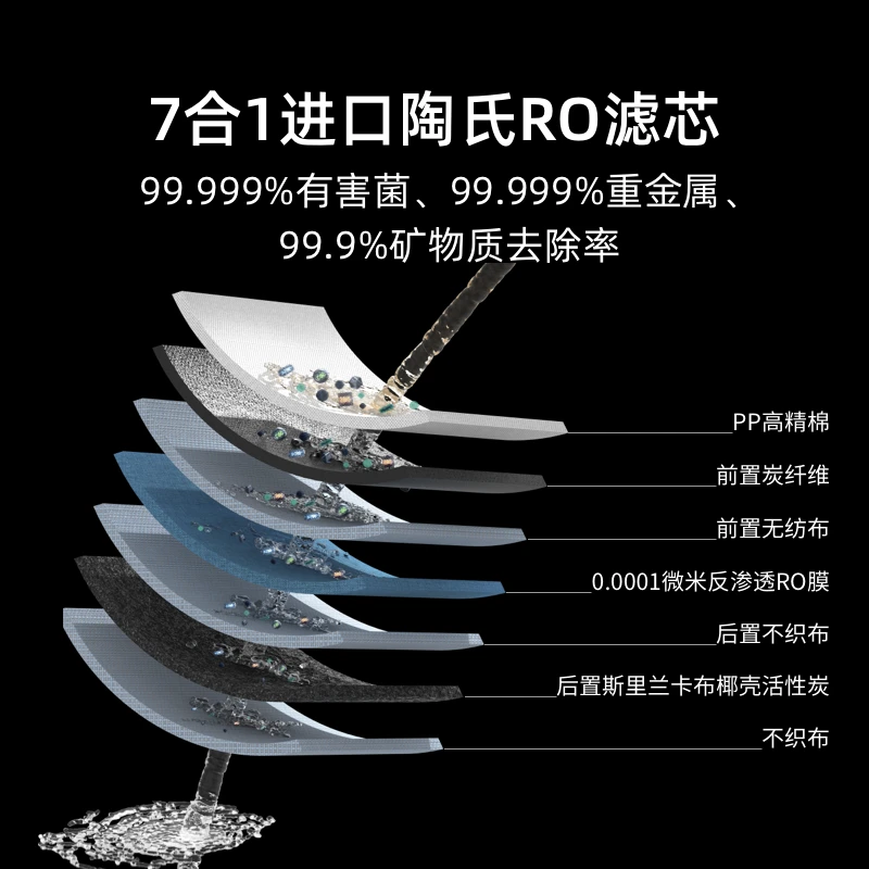 一目Q7 RO直饮机的过滤系统由多层组成,包括高精棉、活性炭、椰壳活性炭等,五层过滤能够加倍去除有害物,达到99.999%的有害物去除率。而且,这款净饮机还采用了深紫外线杀菌技术,24小时不间断地保护我们的饮水安全。