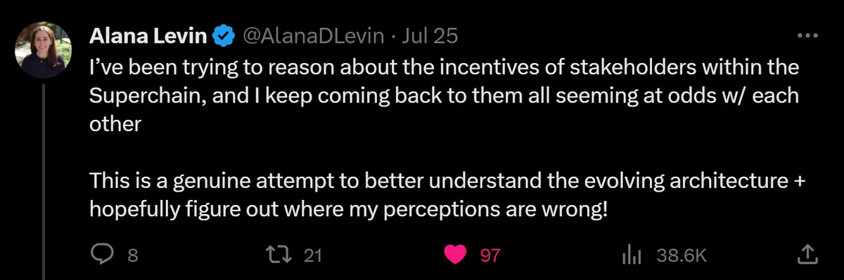 在这篇博文中,我们分析了他的部分论点,并探讨了 Rollup 框架和 RaaS 提供商价值增值的复杂动态。从各个层到 Superchain,我们揭示了 Rollup 框架和 RaaS 提供商价值创造和捕获背后的隐藏机制。