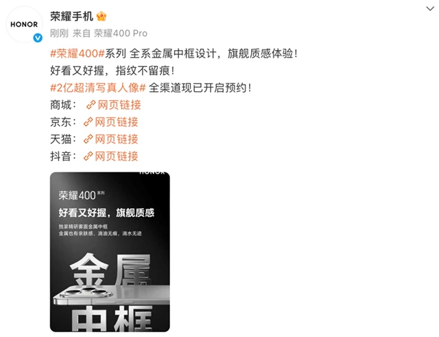 5月14日,荣耀400系列正式官宣亮相,从官方海报上可以看出,此次荣耀400全系都采用了全新的设计工艺, 比iPhone还耀phone。