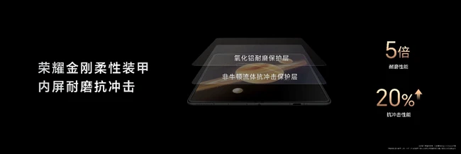 更为出色的是,荣耀Magic V3搭载的是轻薄折叠铰链结构,厚度仅有2.84毫米,采用强度高达2100Mpa的第二代荣耀盾构钢,抗冲击性能提升100%。手机机身更是业界首创航天特种纤维,抗冲击性能是iPhone 15 Pro Max的40倍。在屏幕保护上,荣耀Magic V3的外屏采用荣耀金刚巨犀玻璃,基于第二代纳米微晶玻璃技术,全场景抗跌能力提升了10倍,同时使用氮化硅镀晶技术,独创4000+叠层设计,实现10倍抗刮耐摔;内屏搭载荣耀金刚柔性装甲,通过抗冲硅凝胶材料+纳米级氧化铝涂层,耐磨和抗冲击性能分别提升5倍和20%。此外,荣耀MagicV3的荣耀鲁班铰链经过了50万次折叠测试,1万次弯折测试后,屏幕折痕深度控制出色,仅为78微米;且产品支持IPX8防水等级,成为唯一通过2.5米防水认证的折叠屏手机,为用户提供了全面、安心的折叠屏使用体验。
