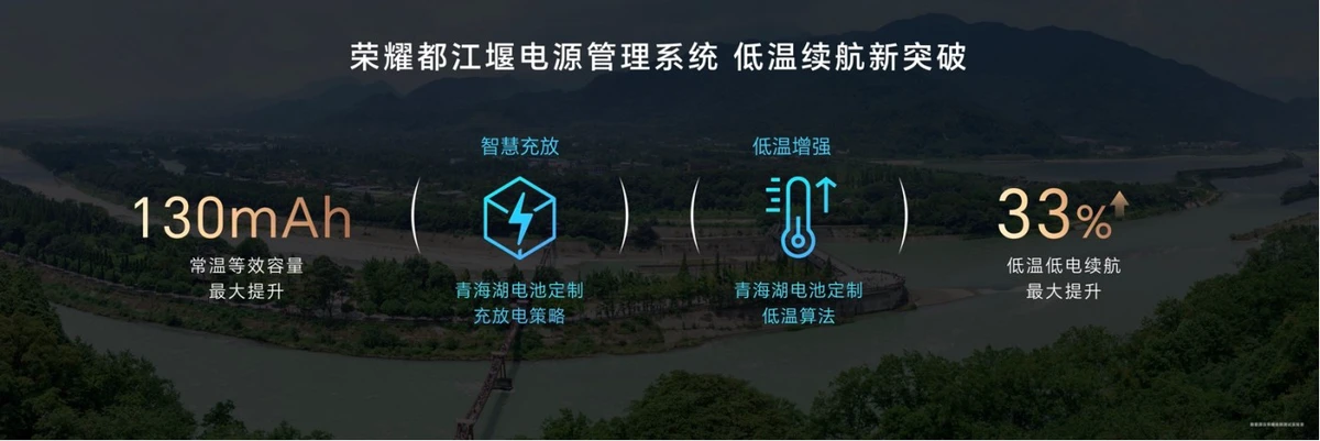 荣耀Magic6系列搭载全新升级的第二代青海湖电池,内置了全新的自研能效增强芯片HONOR E1,配合荣耀都江堰电源管理系统,通过软硬结合,实现了智慧充放和低温增强,为消费者带来全场景全天候长续航体验 。