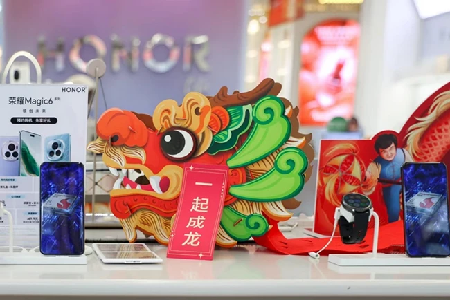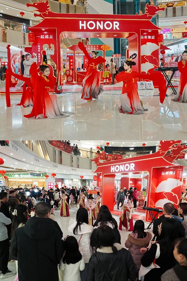 新的一年有龙则灵,有愿必达。自1月19日起,荣耀加码“新年荣耀,一起成龙”年货节,在全国荣耀线下门店上线了“新年许愿处”、“龙运当头”等趣味活动,吸引大批消费者到店打卡许愿,戴龙头迎好运。与此同时,为了回馈广大消费者的支持与信赖,荣耀在线上线下全渠道推出了多样化新年优惠及“荣耀新年吉市”等大型主题活动,让消费者在感受科技魅力的同时,还可以赢取春节好礼。