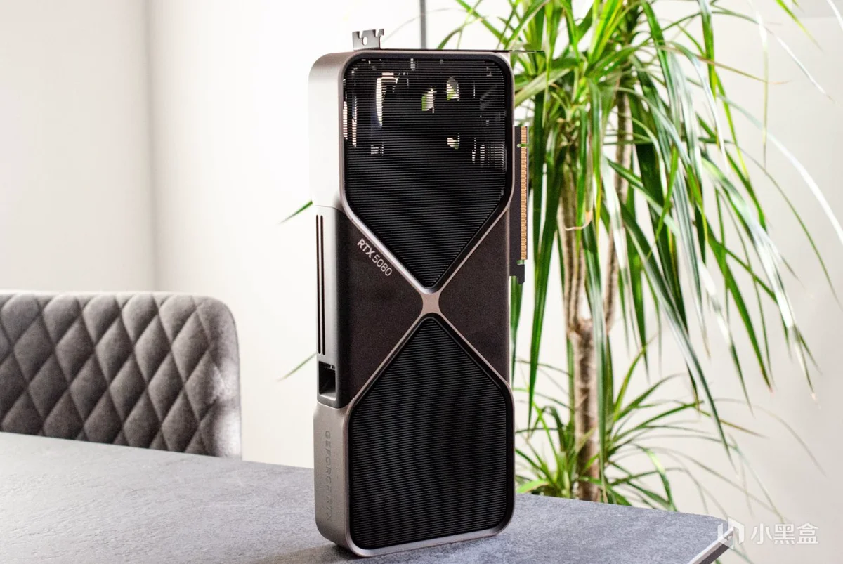 RTX 5080 Founders Edition 外观与 RTX 5090 类似,采用了 更薄的双槽设计,相比 RTX 4080 的三槽厚度更易兼容机箱。