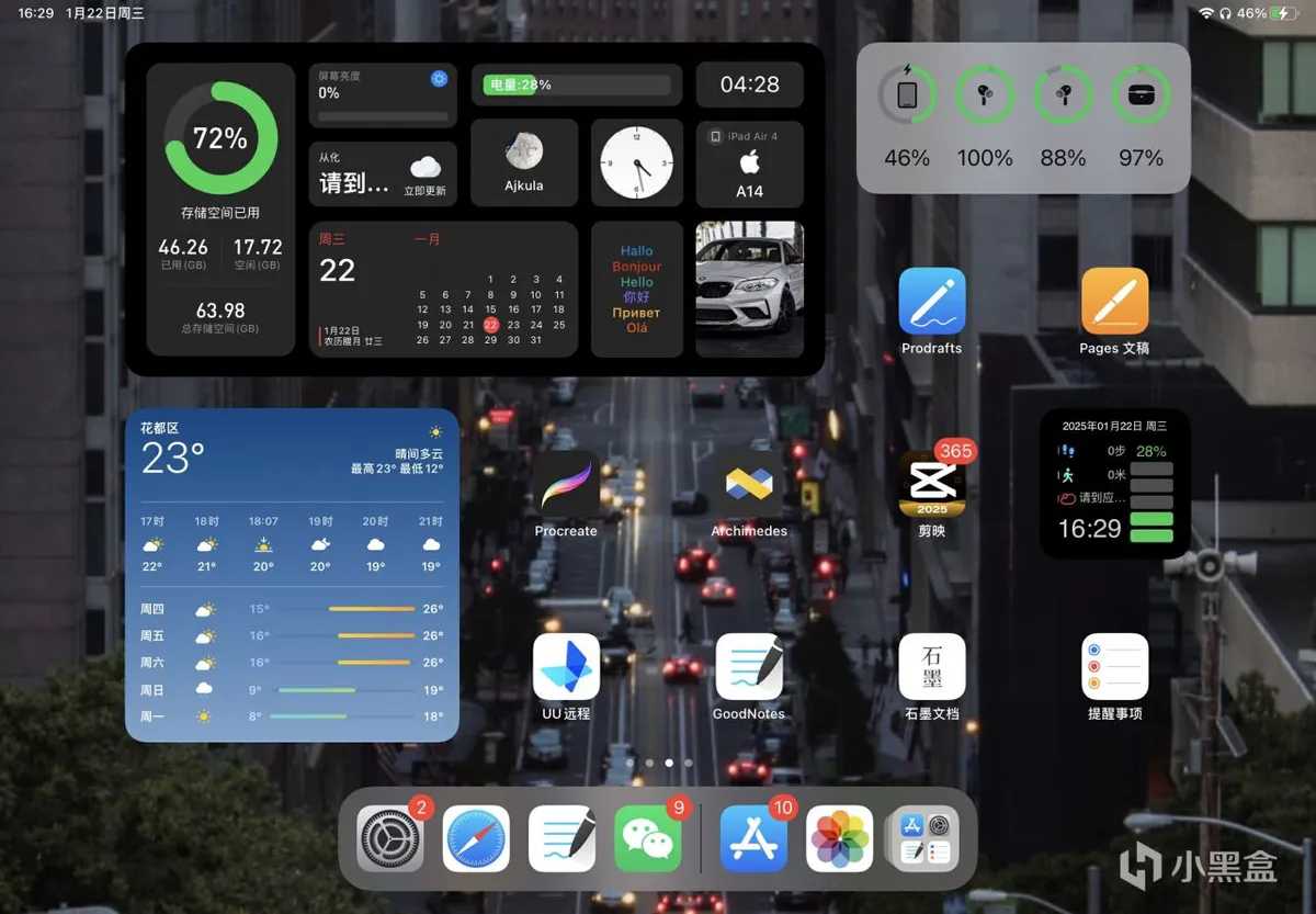 这是一台4年前的产物——64G的ipad air4,二手市场只需1000出头,被我打造成为了一台全方位的生产力设备,进可办公学习提升效率,退可娱乐休闲放松身心