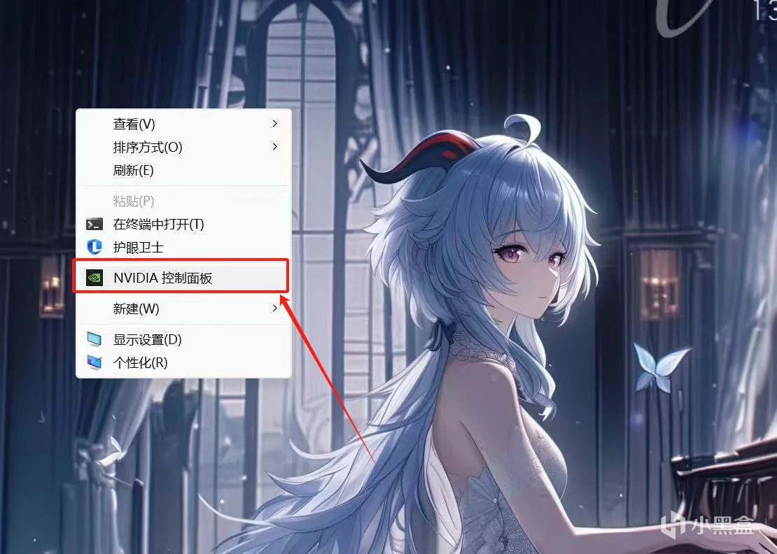 首先右击桌面空白处,点击<NVIDIA控制面板>