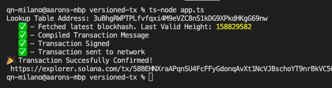 要使用查找表,你必须使用版本 0 交易。如果你不熟悉如何构建和执行版本化交易,请查看我们的指南,这里。