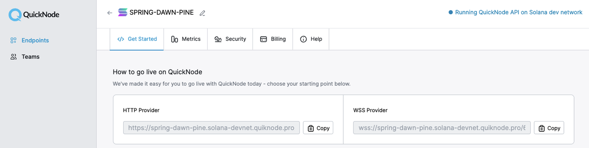 了解为什么超过 50% 的 Solana 项目选择 QuickNode 并在此注册一个免费账户。我们将使用 Solana Devnet 节点。
