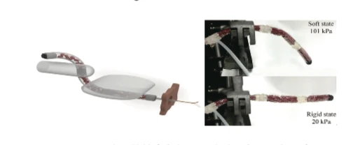 在微创手术(MIS)领域,软体机器人更是有着极大的“用武之地”。软体机器人的应用,可以突破传统微创外科手术方法的局限,比如,自由度低的手术设备对手术造成的局限。伦敦大学研制出刚度可控的章鱼状外科手术机器人手臂,其应用仿生原理,根据手臂机械性能的需要通过控制机械手臂的刚 度更好地配合手术进行,柔软的材质将手术的伤害降到最低。
