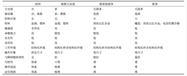 用电动机、齿轮和连杆驱动机器人,其首先需要承受得住各种驱动连杆带来的外力,因此他们需要十分硬实的基础结构。如果利用连杆驱动的机器人是软体的,齿轮一转, 连杆一摇,它立即就会被绞变形。对于软体机器人来说,其一般难以承受连杆传输的机械动力,因而含有电动机、齿轮、连杆的机器人,大都是些钢铁机械构件。