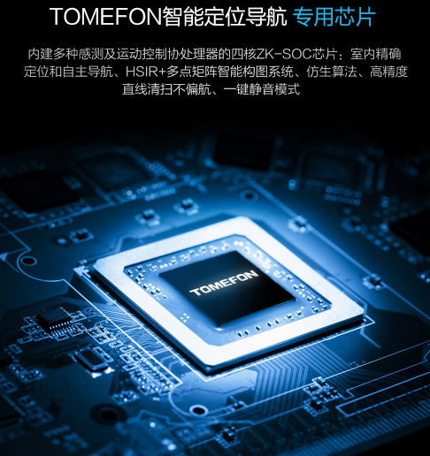 斐纳TOMEFON-TF-D60智能扫地机器人内置有斐纳专用的智能芯片,芯片内建多种感测及运动控制协处理器,无线载波室内定位系统可以实现室内精准定位和自主导航,在对全屋进行扫描后,可通过HSIR+多点矩阵智能构图系统进行精准建图,以做到智能规划路径。仿生运算法则,可以实现智能识别、智能分区,进行有序地清扫,做到不遗漏不重复。第一次进行扫描建图规划路径后,机器人会永久保存路线,使得下次清扫更加快捷。