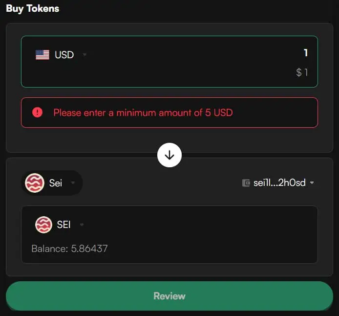 或者,Leap Wallet 为较小的投资提供了一个方便的入口点,允许以最低 5 美元的存款直接购买 SEI。