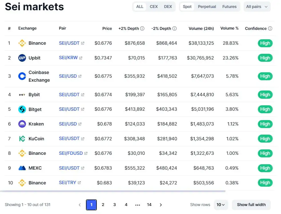 根据 CoinMarketCap 的数据,SEI 代币在 50 多个交易平台上交易,为你提供了广泛的选择。 无论你喜欢中心化交易所 (CEX) 提供的用户友好的界面和法币支持,还是去中心化交易所 (DEX) 的安全性和控制权,都有一个平台可以满足你的需求。