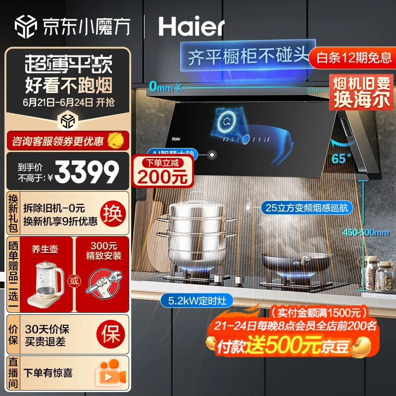 此外,海尔C21U1+Q2BE7烟灶套装的油烟机效果也非常出色。它采用超薄平嵌设计,手势控制非常智能,能让你在烹饪过程中轻松控制油烟。而且,它的安装师傅非常专业,能确保油烟机与橱柜完美贴合,不留任何缝隙。