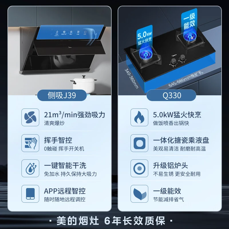 如果您正在寻找一款性能优秀、外观时尚、易于清洁的烟灶套装,美的J39+Q330绝对是您的不二之选。无论是其强大的吸烟功能,还是高效的烹饪能力,都能满足您对现代厨房电器的一切需求。