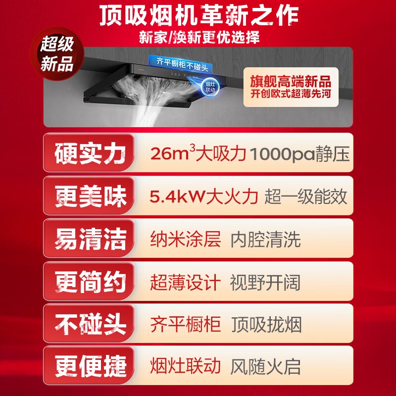 我个人最喜欢的是它的创新7型结构设计,顶侧双吸,油烟乖乖听话,不逃逸。它的外观也是纤薄有型,放在厨房里那是相当的亮眼。而且,它的清洁功能也很强大,70℃高温熔垢,全程高能自清洁,解决了油烟难题,让我们可以更享受烹饪的乐趣。