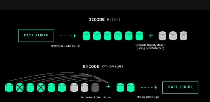 当一个区块被流式传输时,它会被分割成包含纠错码的微小数据包,并发送到大量的随机对等方。