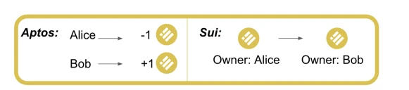 Aptos 遵循更传统的区块链模型,采用类似于以太坊的地址中心设计。虽然它保持了 Move 的资产导向方法,将资源视为具有自己存储和属性的对象,以受益于 Move 提高的安全性,但整体区块链状态仍然围绕地址组织。Aptos 上的可替代代币更像 EVM 代币。Move 记录资源内所有权的独特功能在 AIP-21 中已被禁用。