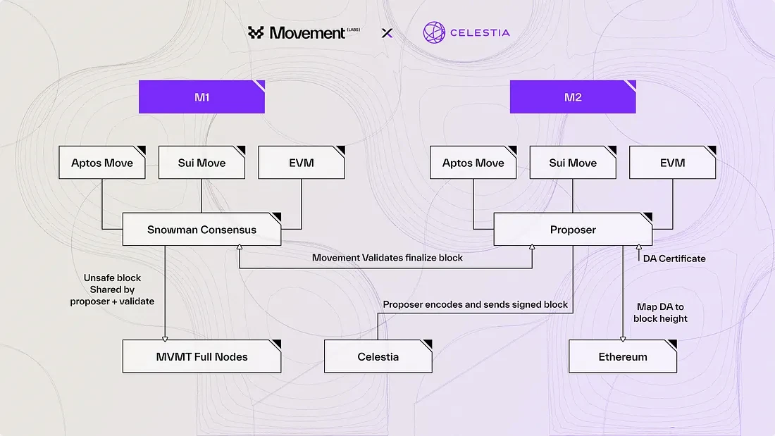 M2 代表了 Move 生态系统中的一种新方法,旨在将 Move 的优势带到以太坊网络作为 Layer 2 解决方案。由 Movement Labs 开发,M2 旨在结合 Move 的安全性和开发者友好性与以太坊的网络效应和已建立的生态系统。M2 的主要特点包括: