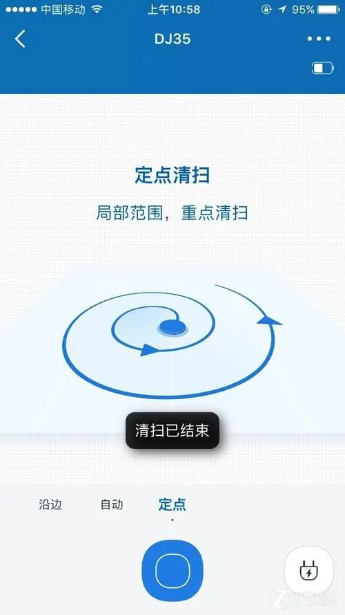 通过手机APP可以设置清扫模式,连接到手机APP后,可以选择自动清扫、定点清扫、沿边清扫等三种模式,选择想要的模式点击,机器人即可自动选择并开启清扫模式,一键操作十分简便,同时在清扫过程中手机APP可以实时记录清扫轨迹、清扫面积和清扫时长。