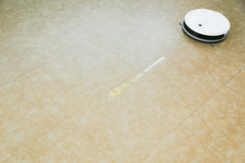 垃圾清洁测试:我们将薯片渣、大米、小米、面粉模拟的垃圾放置在地面上,然后机器人走过,可以很清楚的看到,垃圾几乎瞬间全部被清除,很干净并且没有残留。