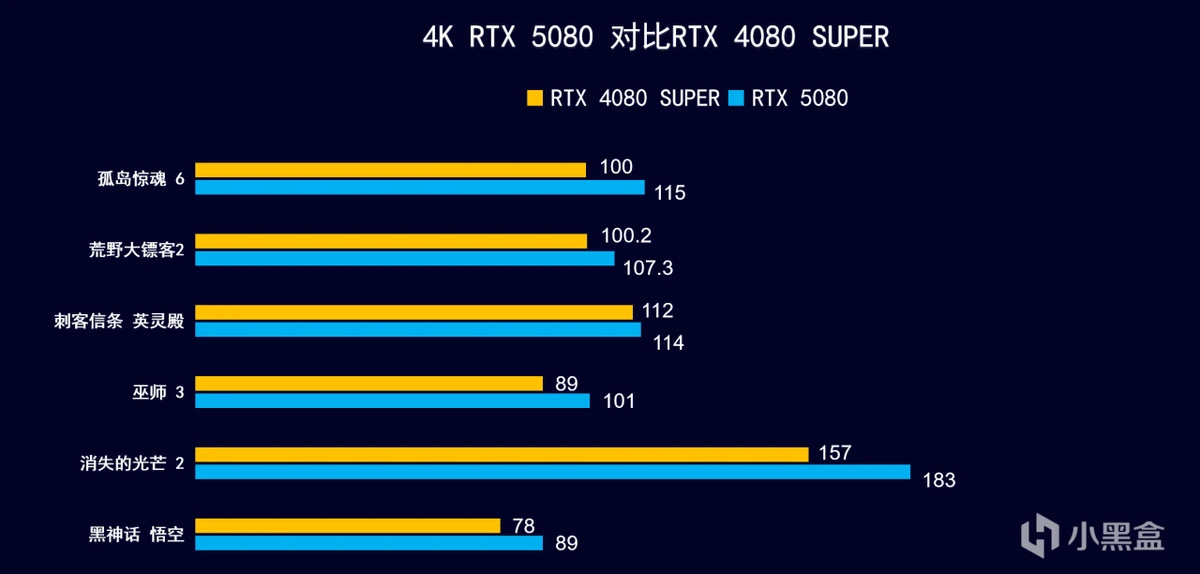 RTX 5080 领先4080SUPER 25%左右, 落后5090D 60%左右