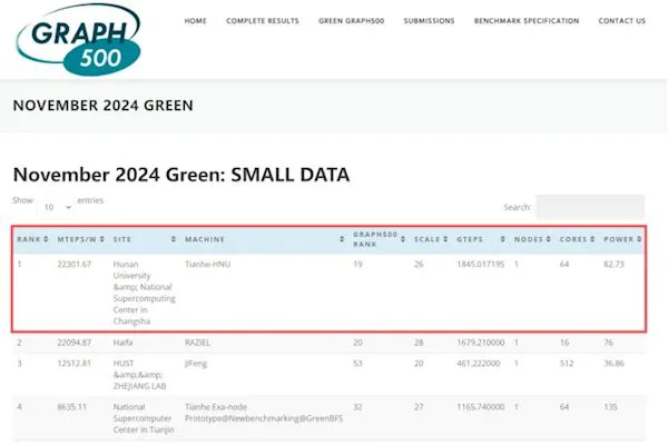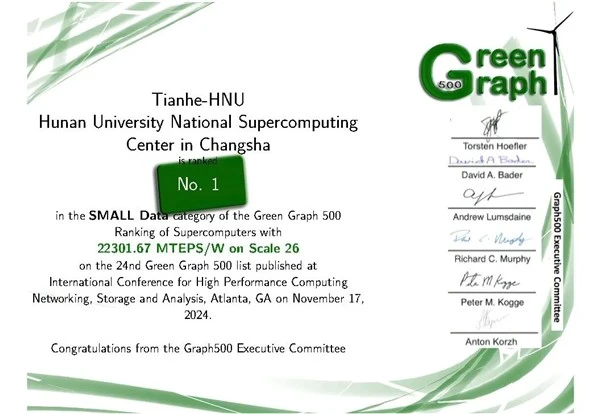 11月21日消息,根据2024年11月最新公布的Graph 500全球排名,湖南大学国家超级计算长沙中心的“天河”超级计算机以22301.67 MTEPS/W位居Small Data Green Graph500(小数据图计算能效)榜单榜首。