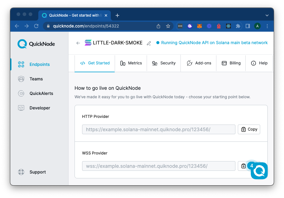 了解为什么超过 50% 的 Solana 项目选择 QuickNode,并在这里 注册免费账户。我们将使用一个 SolanaMainnet 端点。