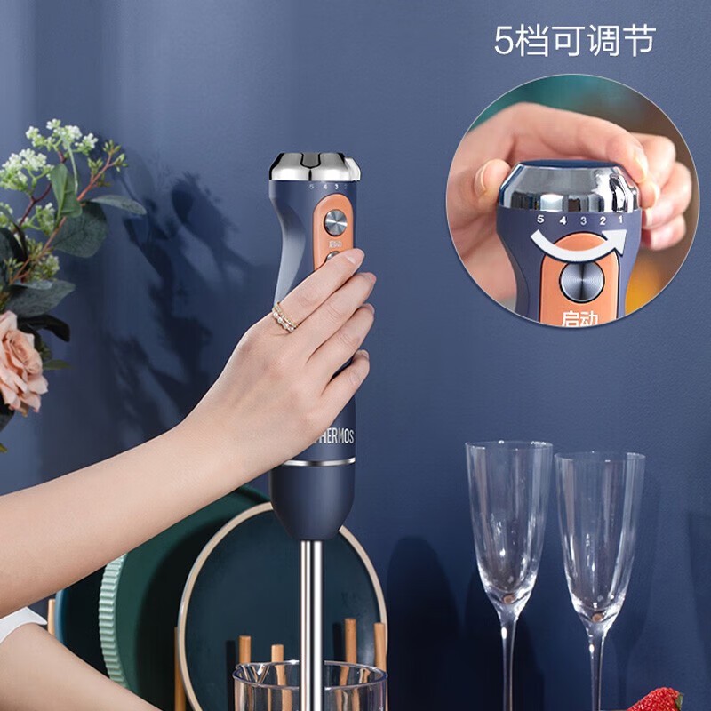 THERMOS宝宝料理棒奶昔白手持料理机是一款专为家庭料理设计的小型搅拌机。其强大的200W大功率和5档调速功能,轻松应对从打发奶油到制作果酱等多种料理需求,让厨房生活变得简单有趣。