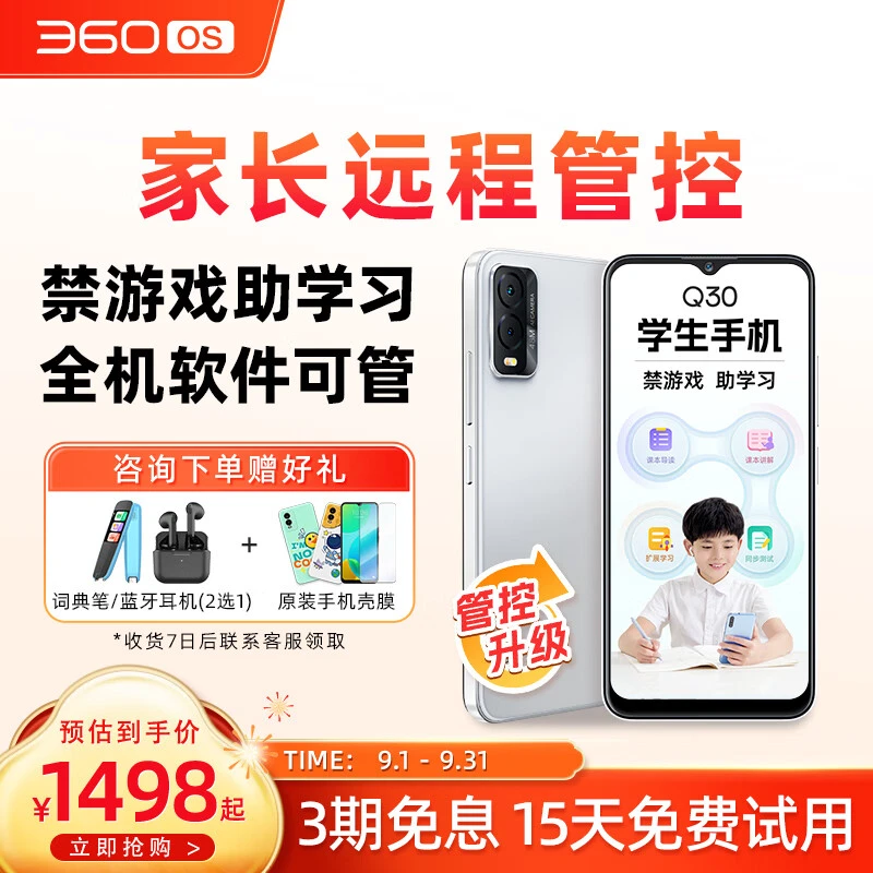 如果你正在寻找一款专为6-18岁学生设计的手机,360OS Q30绝对值得一试。这款手机搭载了10级护眼功能,采用硬件级滤蓝光技术,有效保护孩子视力。特别值得一提的是,其20重守护模式3.0和3大重磅升级的防沉迷系统,让家长可以远程管理孩子的使用时间、游戏和网页浏览,真正实现解放家长。