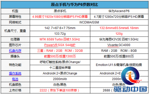 原点手机和P6具体规格如下: