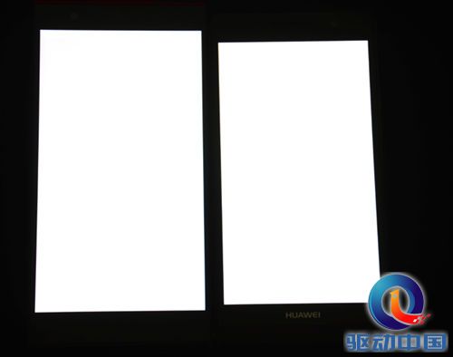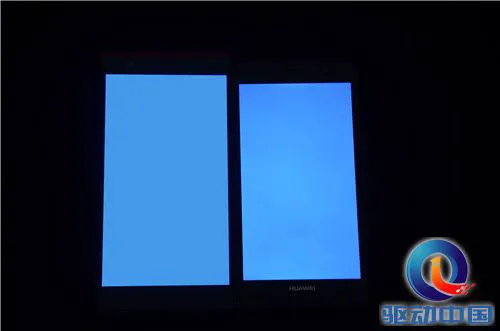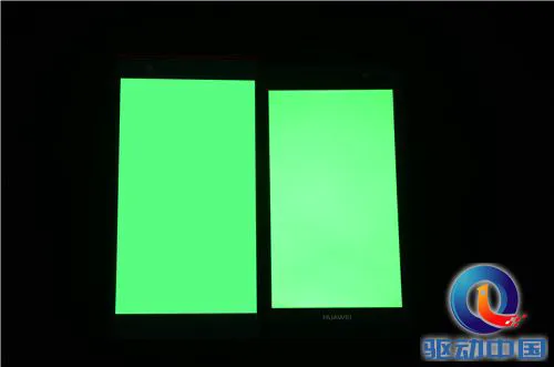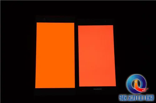 我们用原点手机和P6白色和三原色对比测试(实拍照片有失真,仅作参考),左侧大屏幕为原点手机,右侧小屏幕是华为P6。