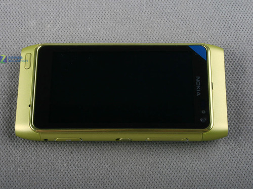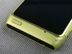 从这张图片中可以看到的是诺基亚N8虽然仍然采用了大屏触控设计,不过侧面的收边可以看到N8还是非常内敛的,这种设计在诺基亚的历史当中也是非常少见的。不过笔者认为这样的设计让外观上失去了霸气的感觉,而且配上青色感觉有些不伦不类。