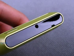 我们看完了一个大致的外观图片,再来看看细节方面。上部分可以看到的是一个光线感应器,而旁边的小口目前什么功能我们还不得而知,不过看起来像是一个视频通话副摄像头。