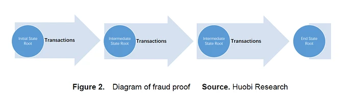 证明欺诈的一般思路是展示状态根,包括起点、终点、中间状态和促使状态变化的交易。必须存在第三方仲裁者来执行来自某个状态的某个或某些交易,并将计算出的状态根与先前发布的状态根进行比较。两者之间的任何不一致都表明运营商犯了欺诈行为。