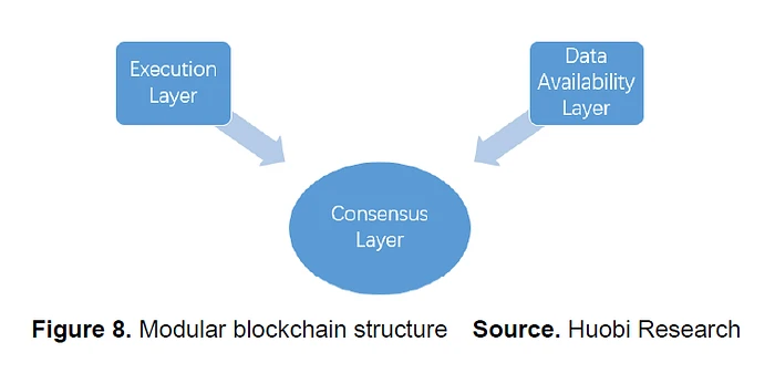 确保去中心化需要许多节点达成共识,每个完整节点执行相同的操作并备份相同的数据。这是一个非常低效的过程,导致低吞吐量和高交易费用。在这种情况下,提高可扩展性的方法是减少主网需要执行的任务,并让其他模块承担更多任务——因此,模块化应运而生。