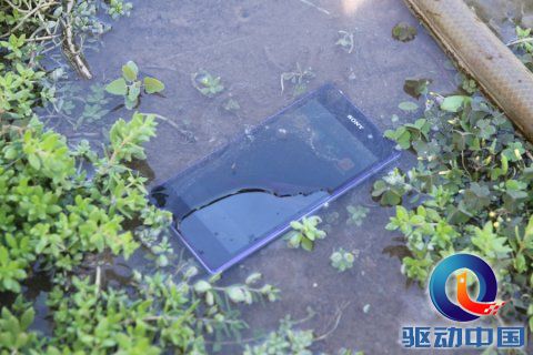 相对于防水测试,防尘方面的测试更加简单。小编找了一个浑浊的水池进行测试,让手机完全浸泡在水池底层的沙土之中。大约浸泡了5分钟左右,等到捞上来之后,手机表面虽然蒙上了一层细微的泥点,但并没有对手机外观及系统造成影响,在水池中洗刷一遍之后,索尼Xperia Z1 L39h再次焕然一新。