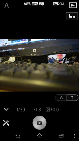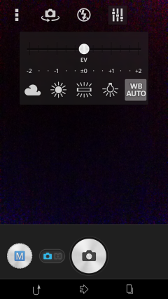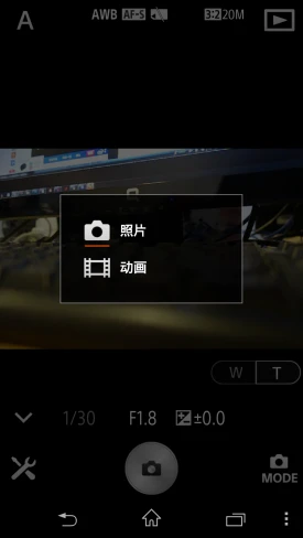 在画面上不仅显示了取景内容,还显示了具体的参数,它给人的感觉就是一部小单反。用户可以自行选择拍摄模式、设置具体的参数,如白平衡、对焦模式、影像尺寸等。