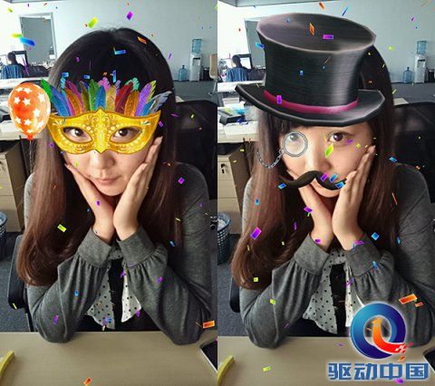 AR效果主打趣味功能,虚拟场景结合人物拍照,营造逼真的现场景观,内置童话、庆典、蝴蝶、潜水、化装舞会、恐龙、时尚迪斯科主题。在手机识别到人脸后,会为人物自动添加搞怪配饰等,小朋友或者爱搞怪的小女生都会对这个功能爱不释手。