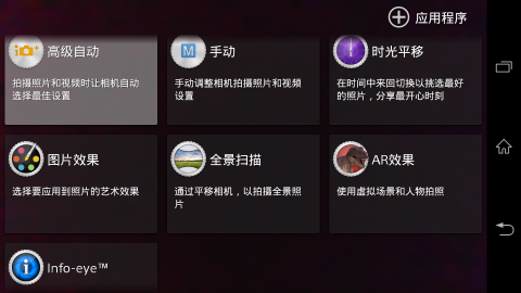 Z1提供七种拍摄模式,分别为高级自动、手动、时光平移、图片效果、全景扫描、AR效果、Info-eye。