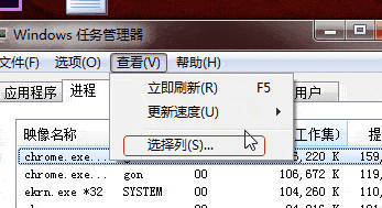 1、先按下Ctrl+Shift+Esc组合键,进入到任务管理器→进程→查看→选择列。