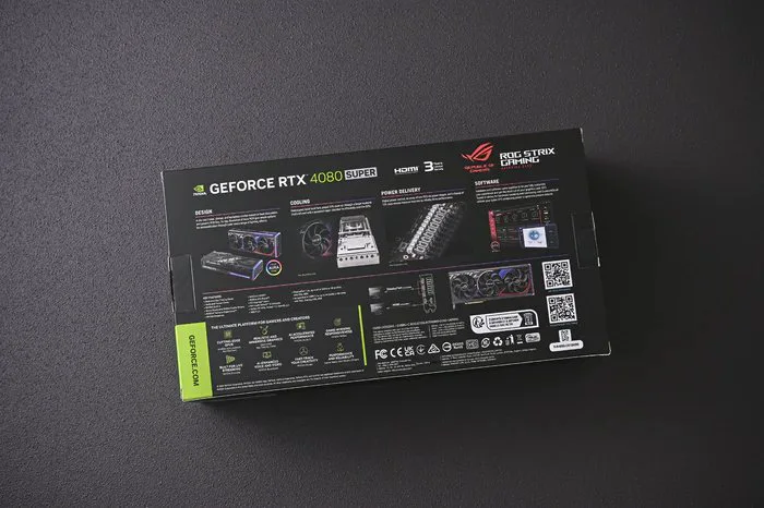 双 12 马上就要来了,喜欢游戏的小伙伴可以升级游戏装备了,推荐一款高端畅玩 4K 3A 游戏利器——ROG STRIX RTX 4080SUPER O16G GAMING。ROG STRIX RTX 4080SUPER O16G 猛禽显卡外观炫酷,设计沿用了 40 系列猛禽家族的设计风格,加入了大量赛博朋克世界观的元素,表面采用深灰色铝合金材质表面配有极具特色的红蓝渐变配色,尾部 ARGB 灯组带来炫酷灯效。结构方面,显卡压铸的护盖、框架与背板提升刚性结构,通风口可让充沛风量通过,搭配三颗轴流风扇再加大提供 23% 以上的风量增加散热能力,全新专利真空腔均温板,以及带有铣削凹槽的热导板,可有效降低 GPU 温度。同时,搭载 18+3 相数字供电控制高电流供电模组和 15K 电容,带来强劲的性能表现。规格方面,使用 Ada Lovelace 架构,核心代号 AD103-400,为 NVIDIA ADA 架构的次旗舰核心,10240 个 CUDA 流处理器(相比 RTX 4080,增加了 512 个 CUDA 核心),全新 SM 多单元流处理器可以提供高达 2 倍的性能和功耗效率;第四代张量核心(Tensor Core)能实现和加速变革性 AI技术;第三代光线追踪核心(RT Core),有着高达 2 倍的光线追踪性能;DLSS 3.0,AI 驱动图形的革命性突破,可大幅提升性能,并通过神经渲染提升光线追踪质量;不仅仅是游戏,全新的第八代 NVENC 双硬件编码器,支持 AV1,有效提升了生产力效率。介绍这么多,下面进入开箱环节。
