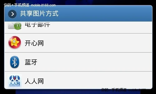 ▲可即时分享到开心、人人网,或用蓝牙、电子邮件发送给好友。