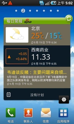 ▲每日简报可以一屏显示天气、股票行情及滚动新闻和计划;还有形象的股票时钟。